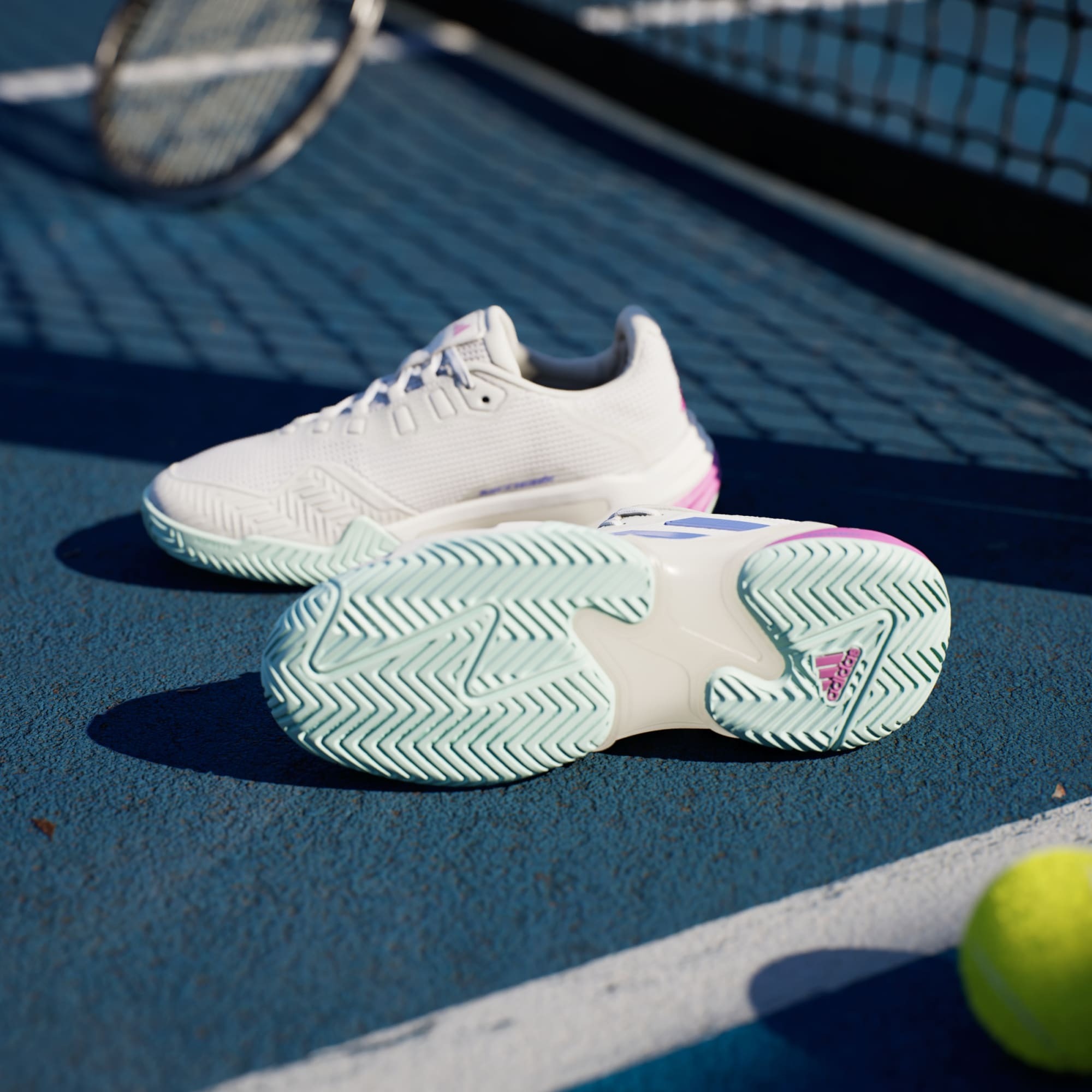 รองเท้าเทนนิสที่ทนทานและซัพพอร์ตได้ดี มีส่วนประกอบของวัสดุรีไซเคิล คุมเกมให้อยู่หมัดด้วยรองเท้าเทนนิสอาดิดาสคู่นี้ จากการผสมผสานระหว่างเทคโนโลยีสุดล้ำเพื่อประสิทธิภาพที่พัฒนาถึงขีดสุดจนกลายมาเป็นความมั่นใจเมื่อลงสนาม เทคโนโลยี Torsion System ช่วยประคองเท้าอย่างมั่นคงระหว่างเคลื่อนไหวอย่างมีพลัง ขณะที่เทคโนโลยี Geofit Sensepods จะโค้งรับกับส้นเท้าอย่างเป็นธรรมชาติเพื่อมอบการซัพพอร์ตที่มากขึ้น อัปเปอร์ผ้าตาข่ายที่ระบายอากาศได้ดีให้คุณรู้สึกเย็นสบายจนจบแมตช์พอยต์ ส่วนพื้นชั้นกลาง REPETITOR จะยกระดับพลังการเล่นไปอีกขั้น