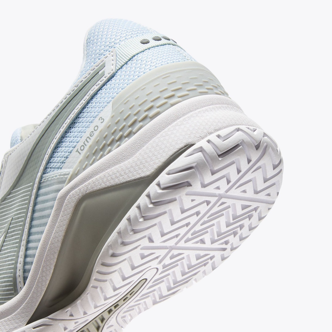 Torneo โดดเด่นด้วยเสถียรภาพและการรองรับที่เหนือชั้น เปรียบเสมือนขุมพลังของ Diadora สำหรับการเล่นที่มีแรงกระแทกสูงรองเท้าเทนนิสคู่นี้สร้างขึ้นสำหรับผู้เล่นมืออาชีพที่ให้ความสำคัญกับการปกป้องและการรองรับแรง กระแทก มาพร้อม เทคโนโลยี Blushieldที่พื้นรองเท้าชั้นกลาง ปรับตัวเข้ากับทุกย่างก้าวเพื่อการควบคุมที่ดีที่สุด สำหรับผู้เล่นที่ต้องการการปกป้องและการดูดซับแรงกระแทก ที่เหนือกว่า Blushield Torneo 3 AG มอบประสิทธิภาพ สูงสุด ด้วยการรองรับส้นเท้าที่แข็งแรงและพื้นรองเท้าชั้นกลางที่ออกแบบมาเป็นพิเศษเพื่อความมั่นคงเหนือระดับ เพื่อประสิทธิภาพสูงสุดไม่ว่าคุณจะเล่นในสนามใดก็ตาม – สำหรับพื้นผิวการเล่นทุกประเภท โครงสร้างพื้นรองเท้า AG (All Ground) รองรับเกมของคุณบนภูมิประเทศประเภทต่างๆ – เสถียรภาพดีเยี่ยม ตัวกันโคลงขนาดใหญ่ด้านหลังส้นเท้าช่วยปกป้องข้อเท้าและช่วยรองรับ – หลังเท้าสูง เหมาะสำหรับผู้ที่ชอบการร้อยเชือกแบบคลาสสิกพร้อมการปรับแต่งสูงสุด – การปกป้องและความทนทาน โครงสร้างของพื้นรองเท้าส่วนบนและชั้นกลางทำให้รองเท้ามีความทนทานและป้องกันการลื่นเป็นพิเศษ – เทคโนโลยี Blushield บนอุ้งเท้า Blushield ช่วยปรับสมดุลพฤติกรรมเท้าที่ไม่สมดุล เปลี่ยนการวางเท้าที่ไม่เท่ากันให้กลายเป็นการวิ่งที่สมดุล ข้อดีอย่างยิ่งของเทคโนโลยีนี้คือจะทำงานเฉพาะจุดที่คุณต้องการเท่านั้น