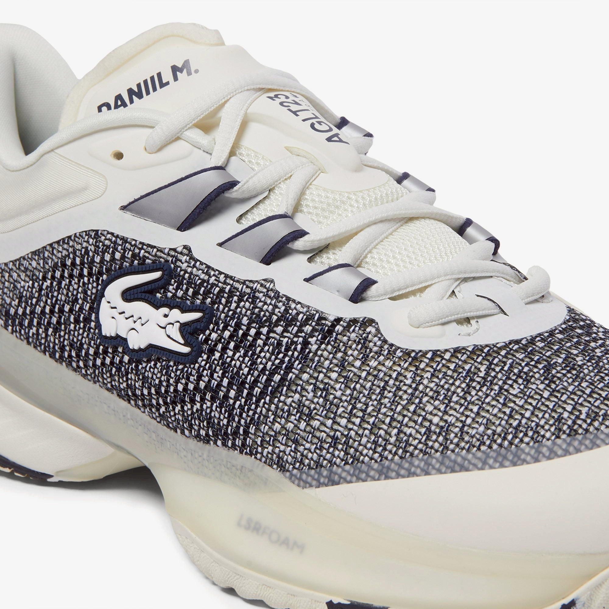 AG-LT23 Ultra คือรองเท้าประสิทธิภาพสูงที่ผสานความมั่นคงและความทนทานอย่างลงตัว โดดเด่นด้วยสไตล์คลาสสิกของ Lacoste ประดับด้วยตราสัญลักษณ์จระเข้ที่ด้านข้าง และพื้นรองเท้าด้านนอกทำจากยางที่ช่วยเพิ่มการยึดเกาะ นอกจากนี้ยังมีรายละเอียดแบรนด์ Daniil Medvedev อันเป็นเอกลักษณ์ ซึ่งเป็นส่วนหนึ่งของแคปซูลความร่วมมือนี้